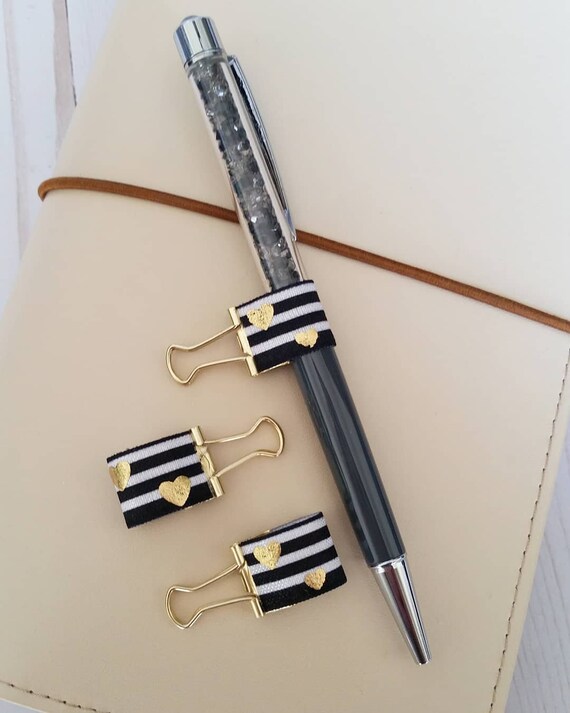 Gold Hearts Planner Pen Holder Binder Clip Pen Holder Travelers Notebook Pen Holder Happy Planner Pen Holder Elastic Pen Loop