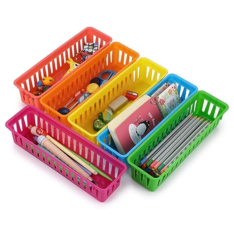 Btsky 12 Pack Classroom Pencil Basket Trays Colorful Pencil Organizer Crayon Basket Long Office Supply Baskets Organization Trays